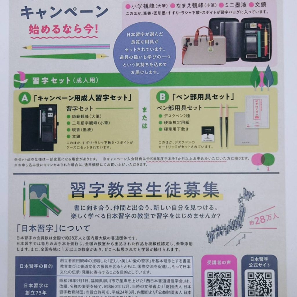 🟢毛筆と硬筆の体験になります✨